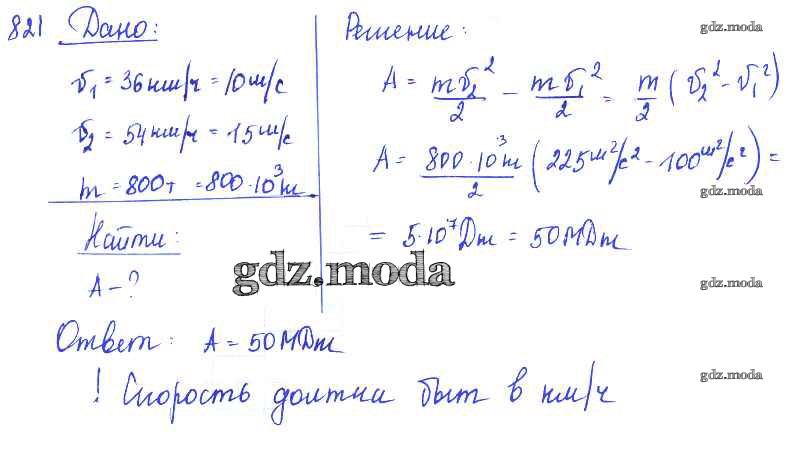 ОТВЕТ на задание № 821 Сборник задач по Физике 7-9 класс Лукашик