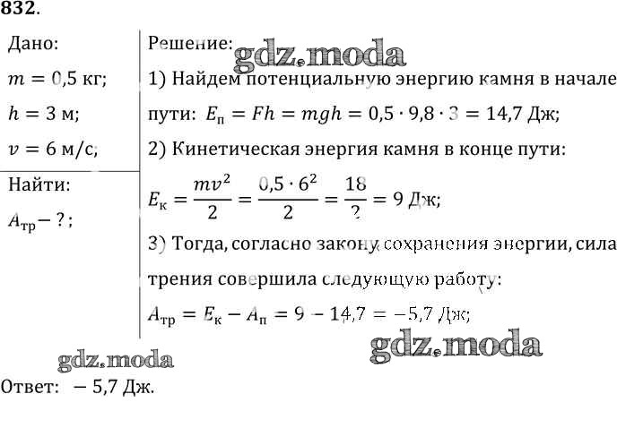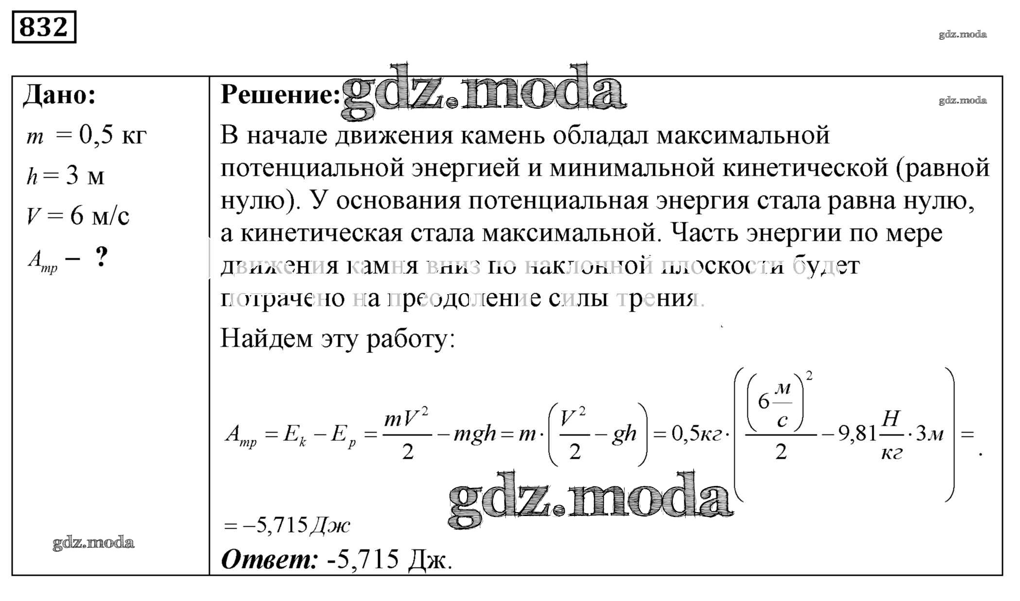 ОТВЕТ на задание № 832 Сборник задач по Физике 7-9 класс Лукашик