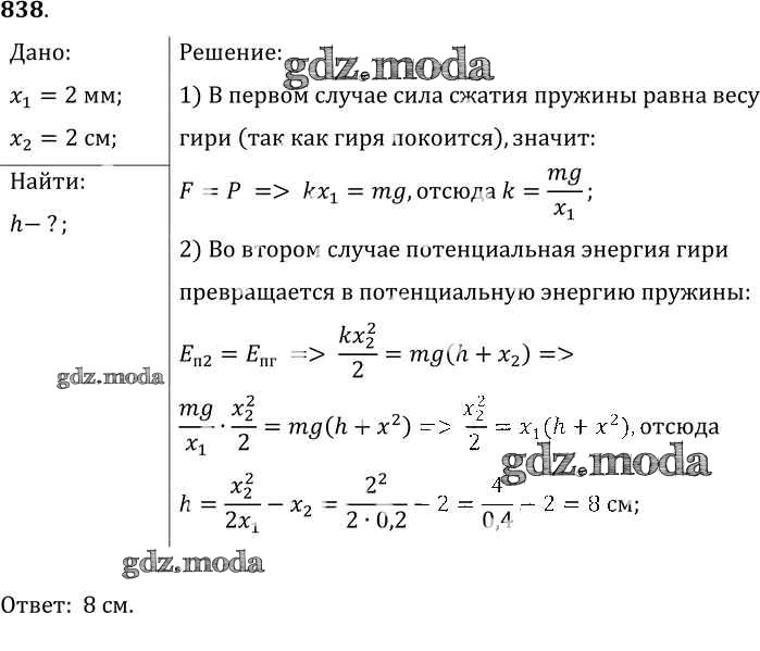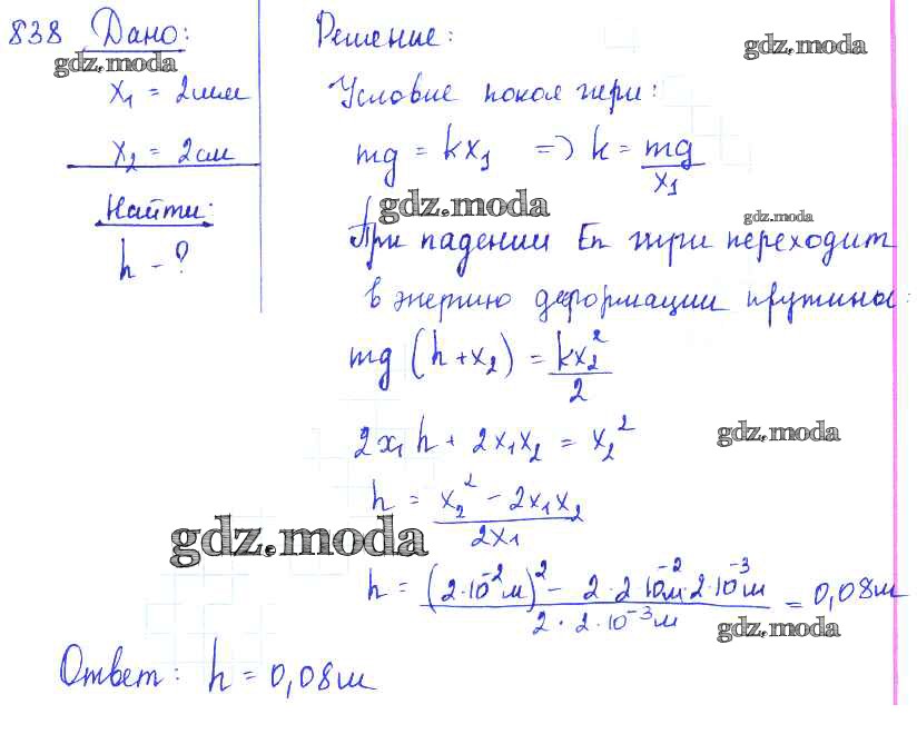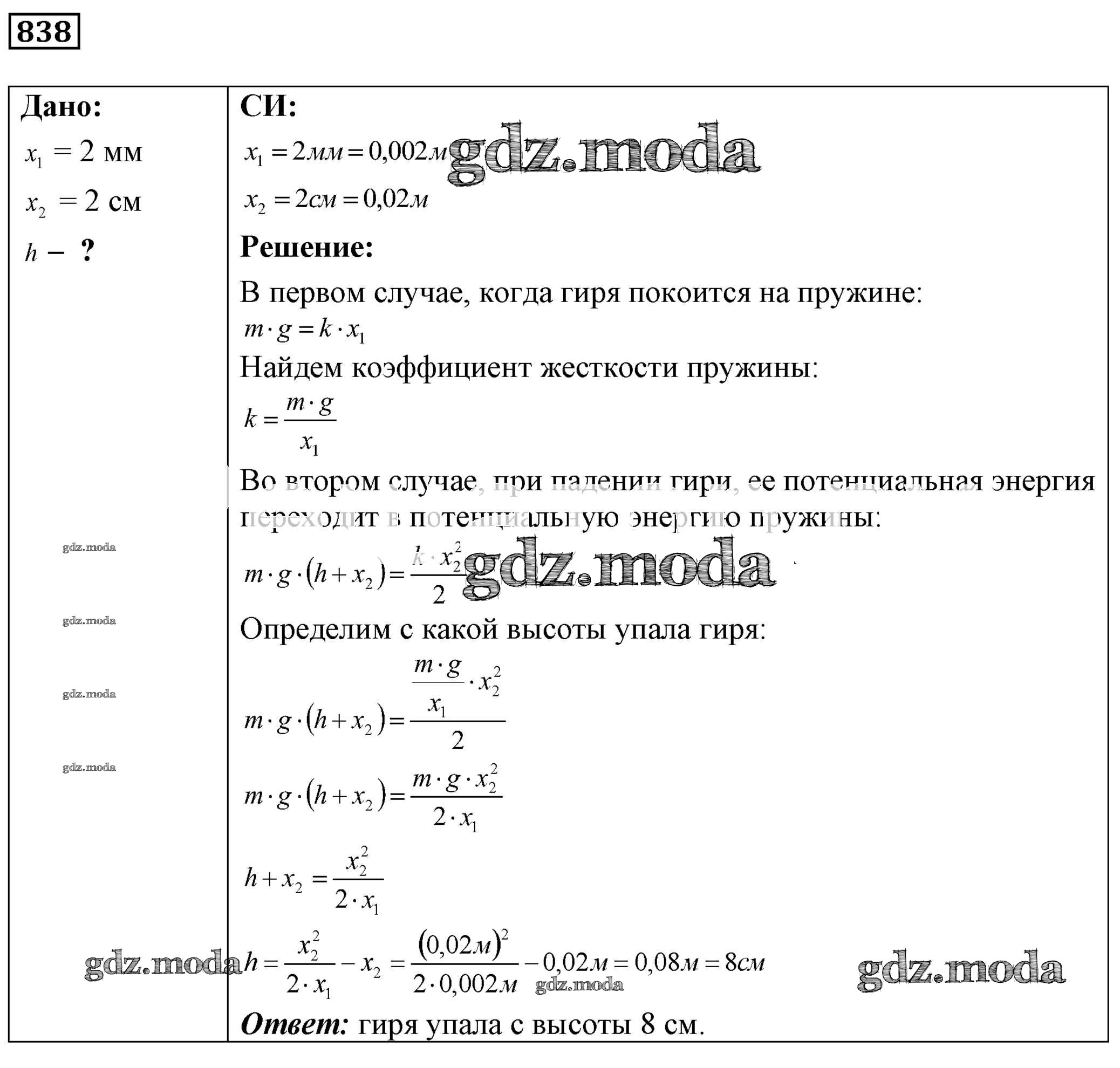 ОТВЕТ на задание № 838 Сборник задач по Физике 7-9 класс Лукашик