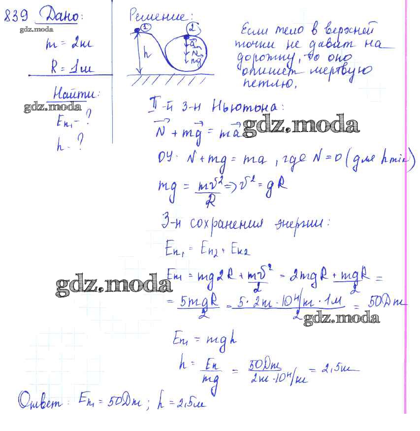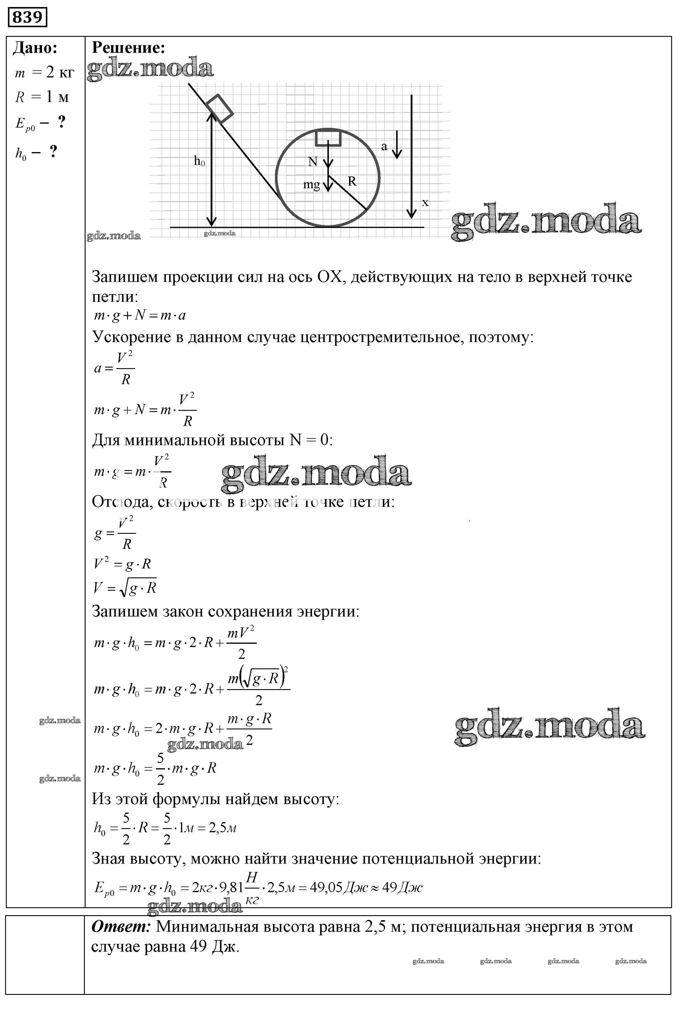 ОТВЕТ на задание № 839 Сборник задач по Физике 7-9 класс Лукашик