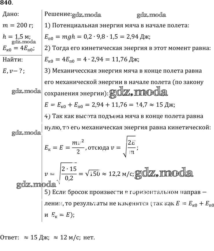 ОТВЕТ на задание № 840 Сборник задач по Физике 7-9 класс Лукашик