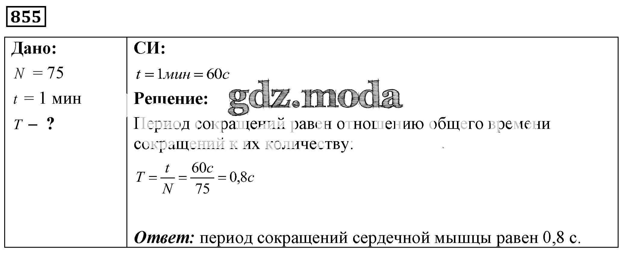 ОТВЕТ на задание № 855 Сборник задач по Физике 7-9 класс Лукашик
