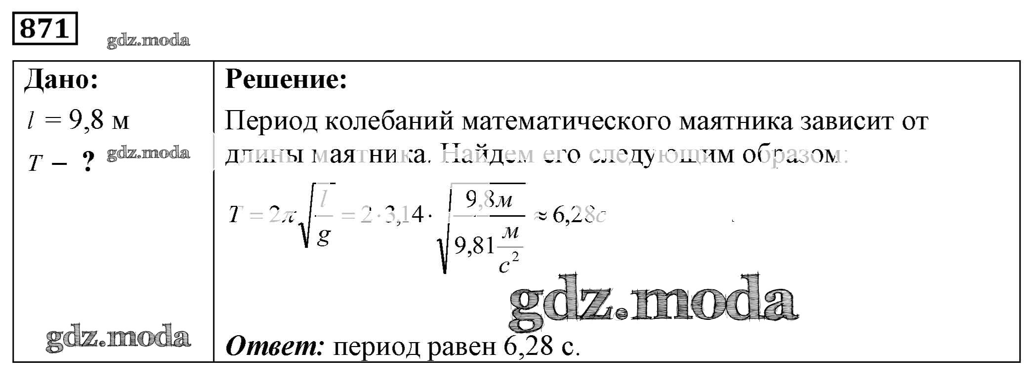 ОТВЕТ на задание № 871 Сборник задач по Физике 7-9 класс Лукашик