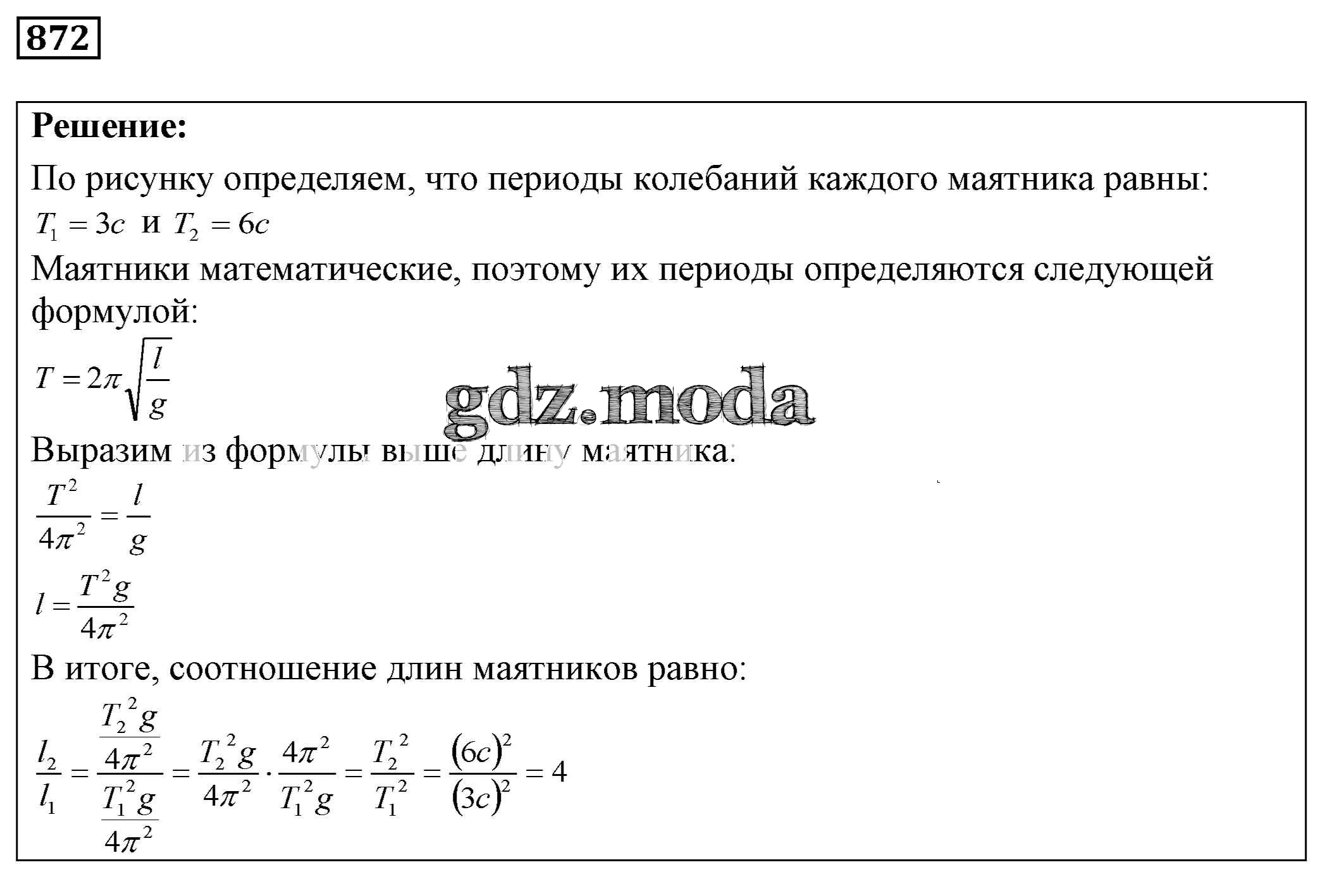 ОТВЕТ на задание № 872 Сборник задач по Физике 7-9 класс Лукашик
