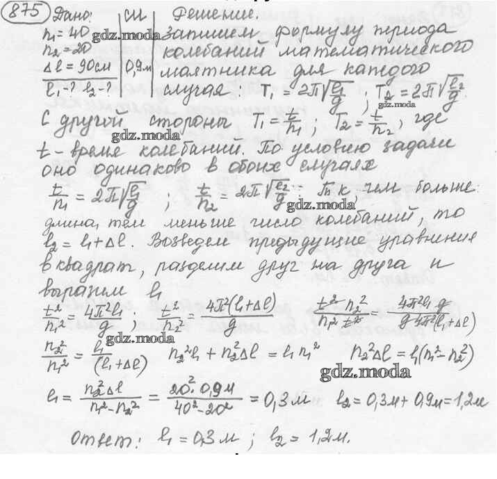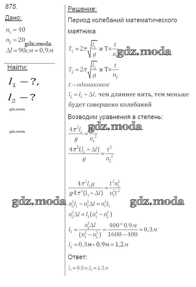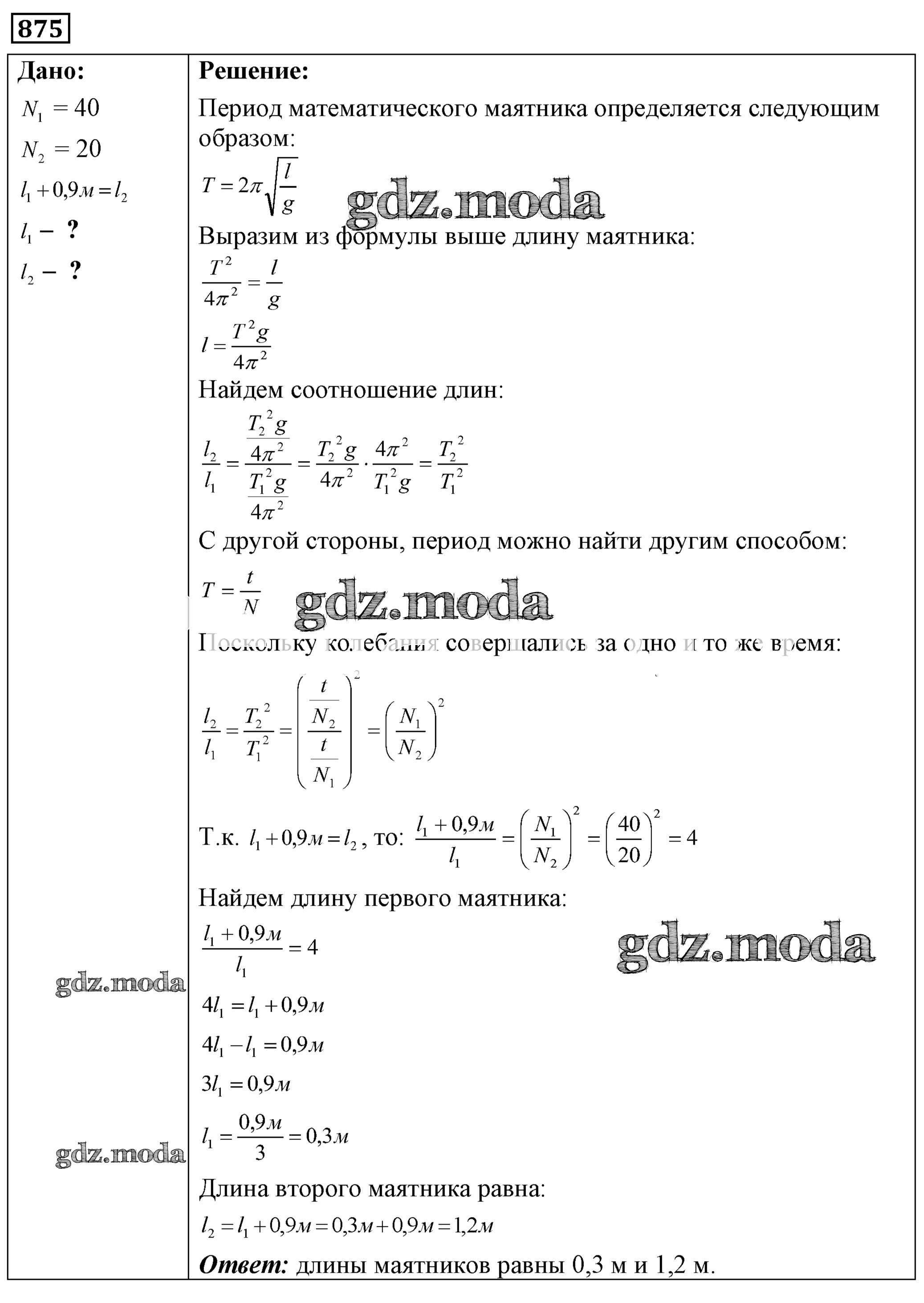 ОТВЕТ на задание № 875 Сборник задач по Физике 7-9 класс Лукашик