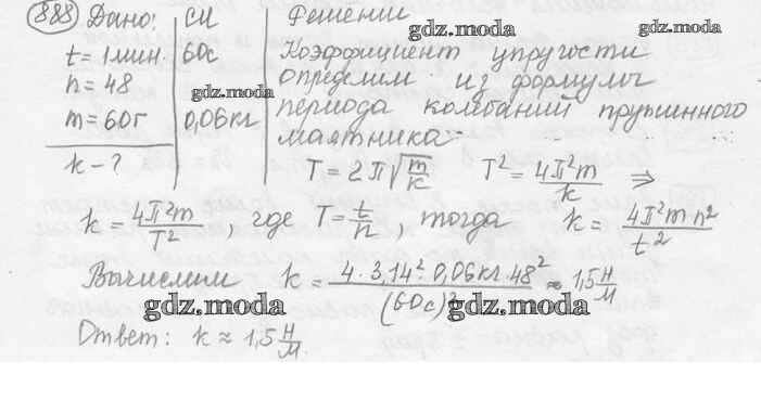ОТВЕТ на задание № 888 Сборник задач по Физике 7-9 класс Лукашик