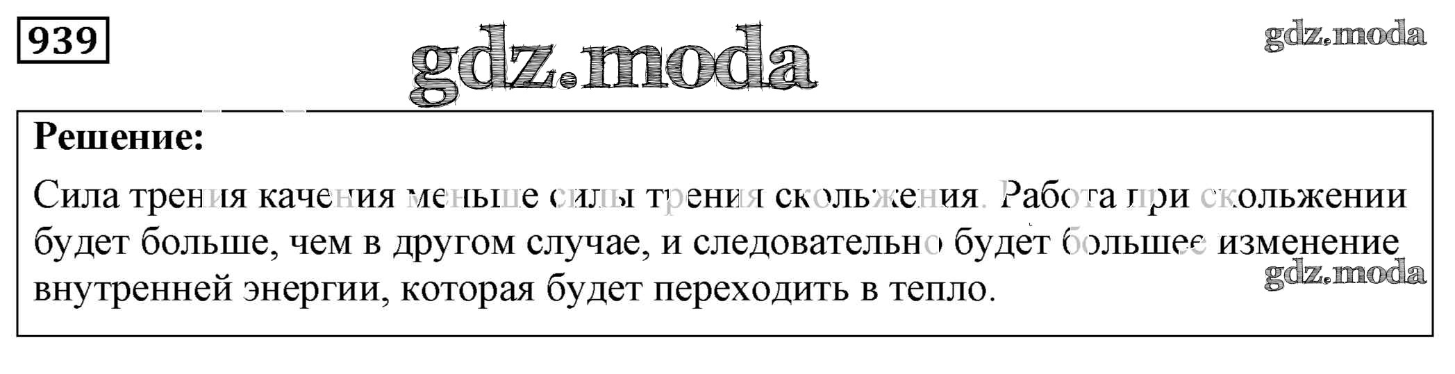 ОТВЕТ на задание № 939 Сборник задач по Физике 7-9 класс Лукашик