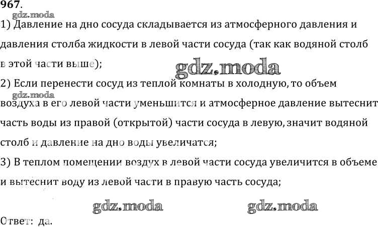 ОТВЕТ на задание № 967 Сборник задач по Физике 7-9 класс Лукашик