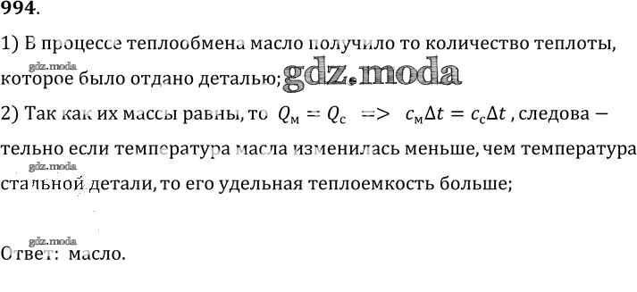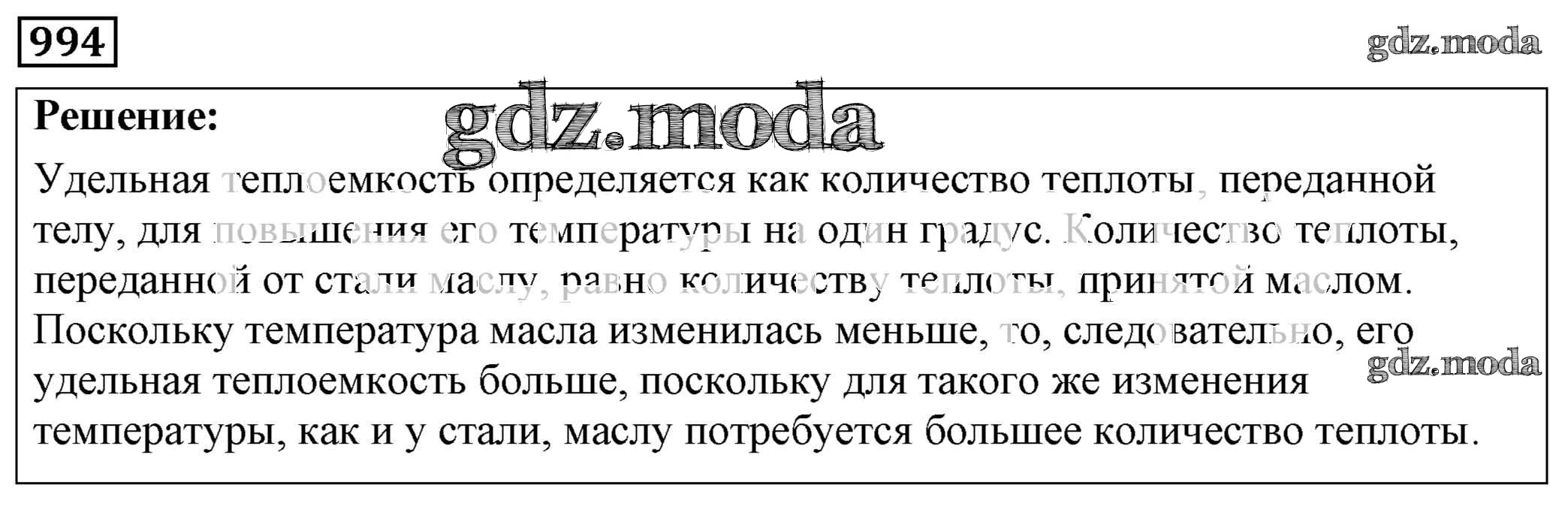 ОТВЕТ на задание № 994 Сборник задач по Физике 7-9 класс Лукашик