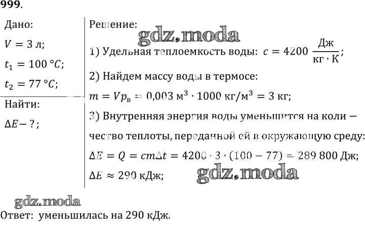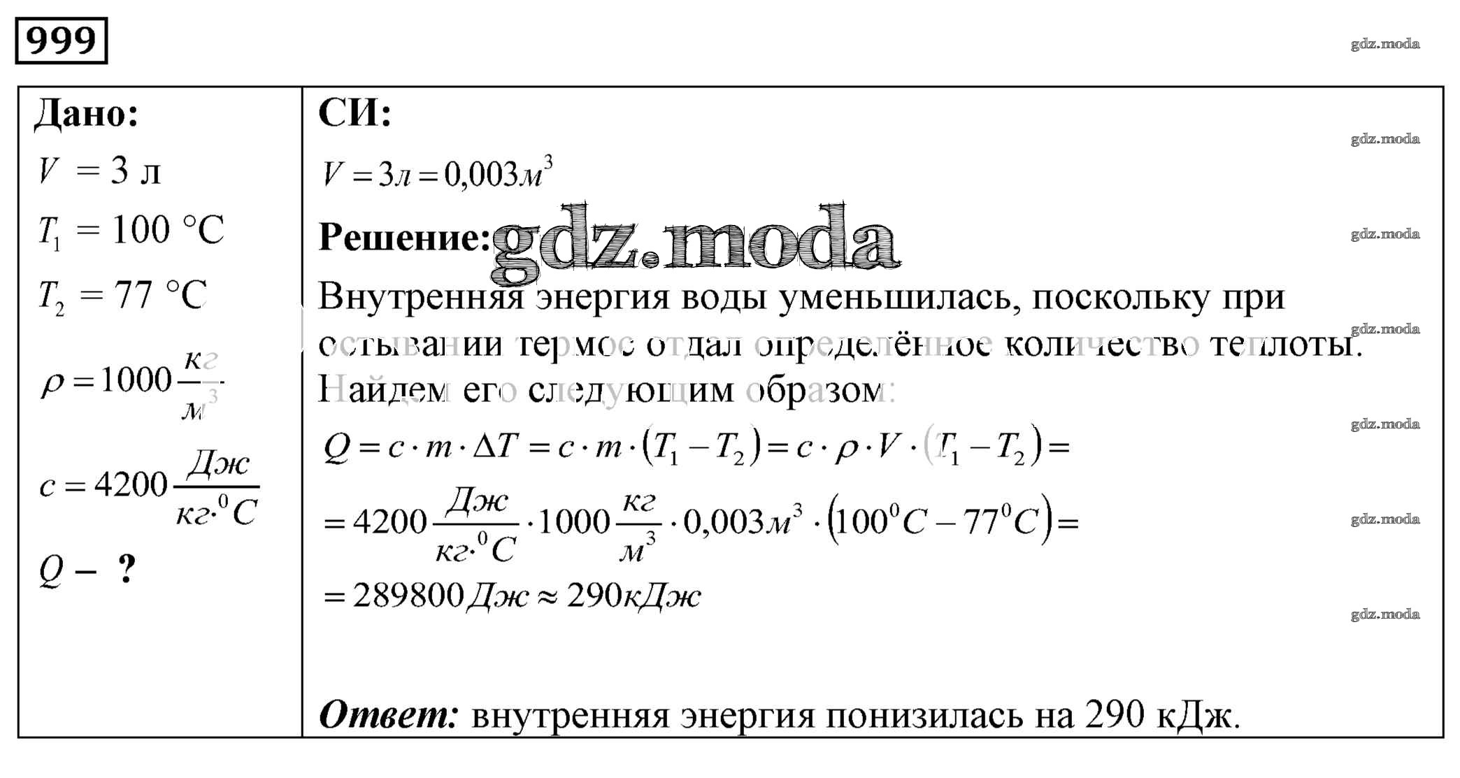 ОТВЕТ на задание № 999 Сборник задач по Физике 7-9 класс Лукашик