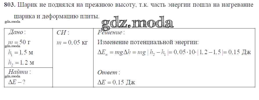 ОТВЕТ на задание № 803 Сборник задач по Физике 7-9 класс Перышкин УМК