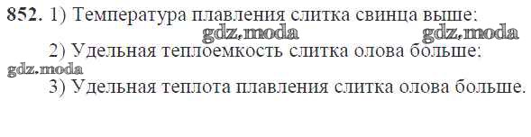 ОТВЕТ на задание № 852 Сборник задач по Физике 7-9 класс Перышкин УМК