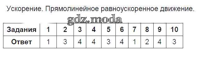 ГДЗ решение к заданию № Прямолинейное равноускоренное движение. Ускорение Физика 9 класс тесты Громцева О.И. (к уч. Перышкина А.В.) Экзамен 2017 ФГОС бесплатно на гдз.мода!