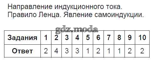 ОТВЕТ на задание № Направление индукционного тока. Правило Ленца Тесты по Физике 9 класс Громцева УМК