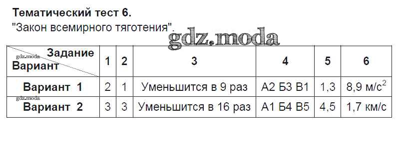 ГДЗ решение к заданию № 6 Физика 9 класс тесты Слепнева Н.И. (к уч. Перышкина А.В.) Дрофа 2016 ФГОС бесплатно на гдз.мода!
