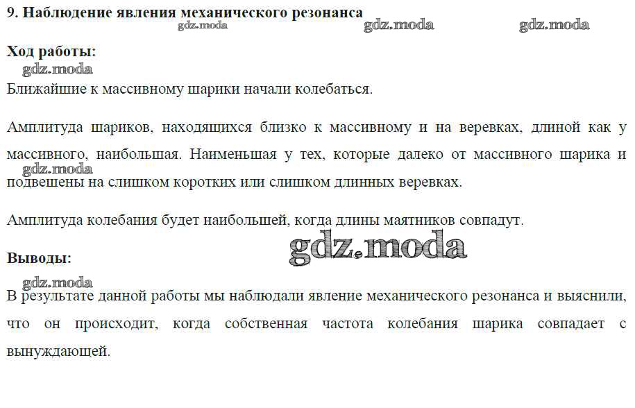 ГДЗ решение к заданию № 9 Физика 9 класс тетрадь-практикум Артеменков Д.А. Просвещение 2016 ФГОС бесплатно на гдз.мода!