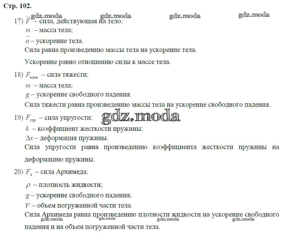 ГДЗ решение к заданию № 102 Физика 9 класс тетрадь-тренажёр Артёменков Д.А. Просвещение 2011 ФГОС бесплатно на гдз.мода!