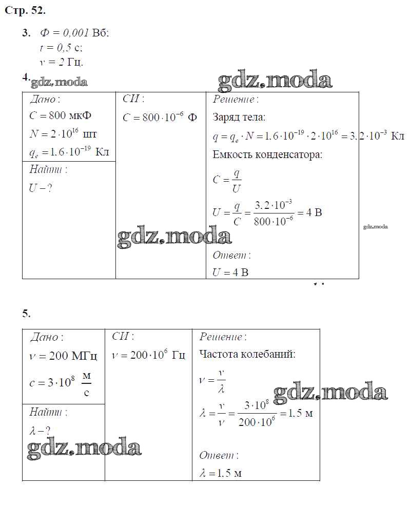 ГДЗ решение к заданию № 52 Физика 9 класс тетрадь-тренажёр Артёменков Д.А. Просвещение 2011 ФГОС бесплатно на гдз.мода!