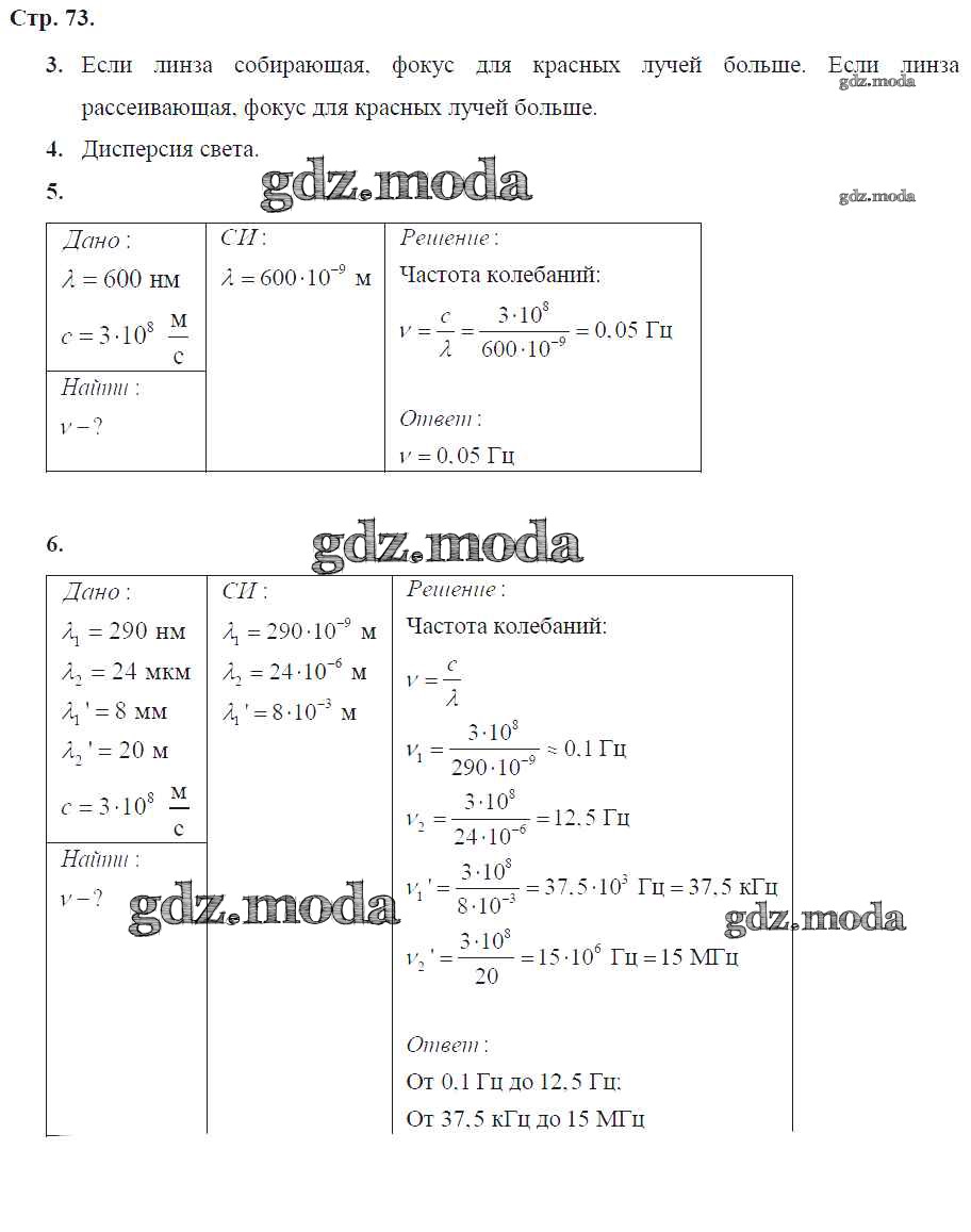ГДЗ решение к заданию № 73 Физика 9 класс тетрадь-тренажёр Артёменков Д.А. Просвещение 2011 ФГОС бесплатно на гдз.мода!