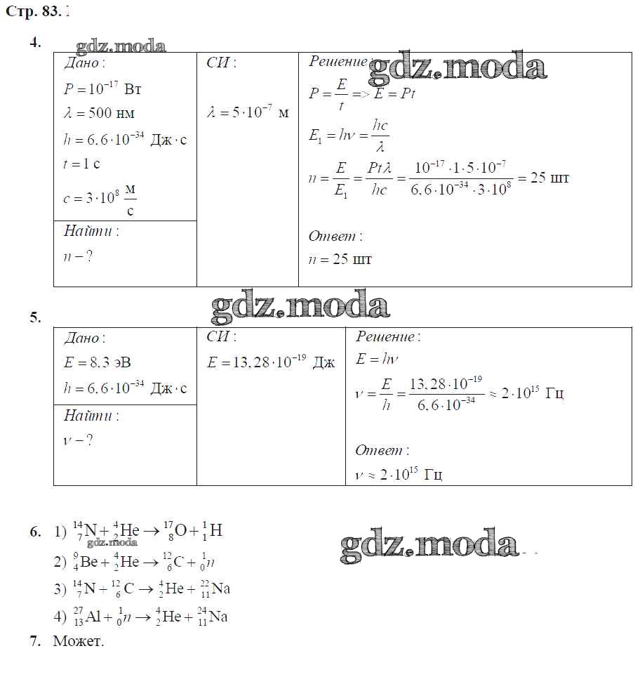 ГДЗ решение к заданию № 83 Физика 9 класс тетрадь-тренажёр Артёменков Д.А. Просвещение 2011 ФГОС бесплатно на гдз.мода!