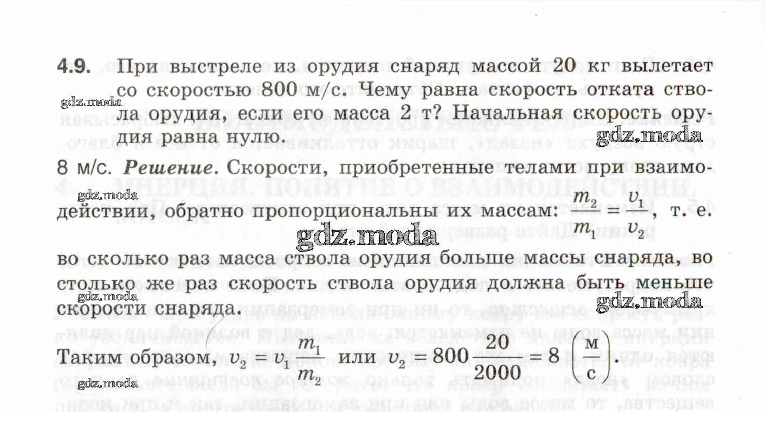 ОТВЕТ на задание № 4.9 Задачник по Физике 7-9 класс Генденштейн