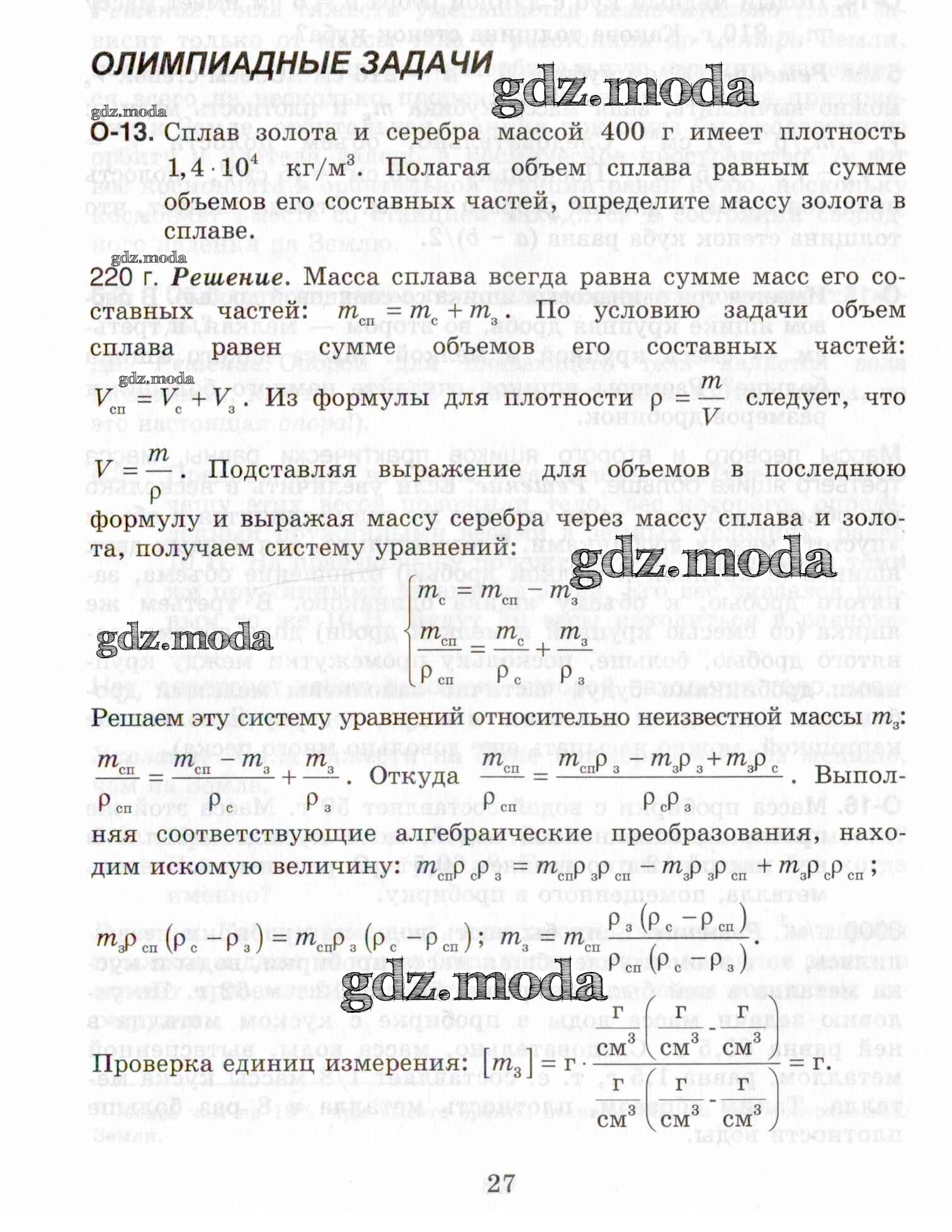 ОТВЕТ на задание № О-13 Задачник по Физике 7-9 класс Генденштейн
