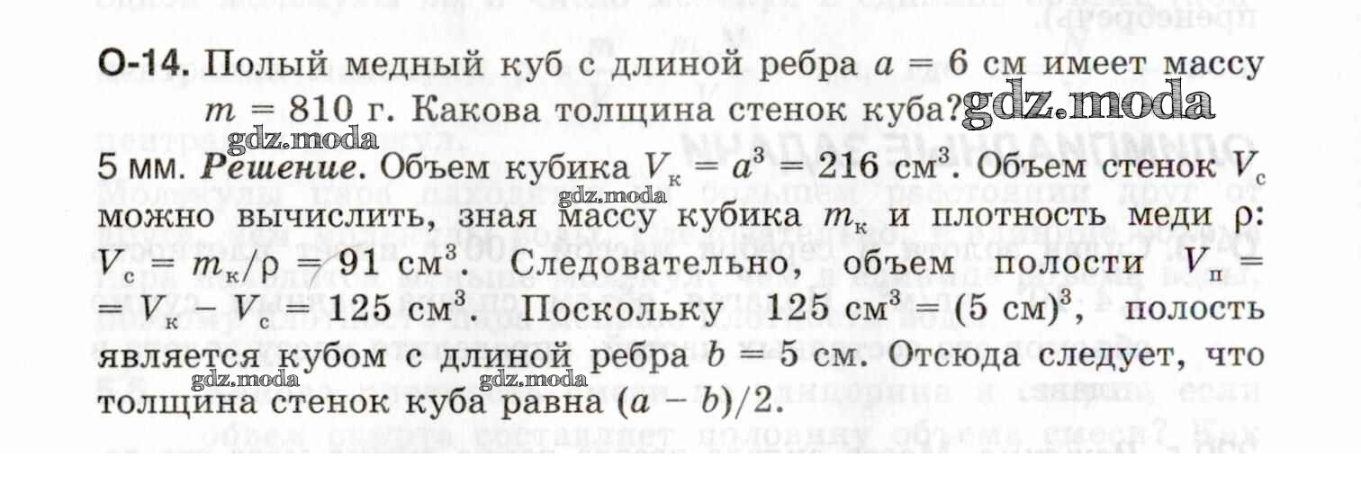 ОТВЕТ на задание № О-14 Задачник по Физике 7-9 класс Генденштейн