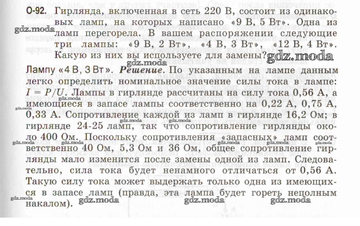 ОТВЕТ на задание № О-92 Задачник по Физике 7-9 класс Генденштейн