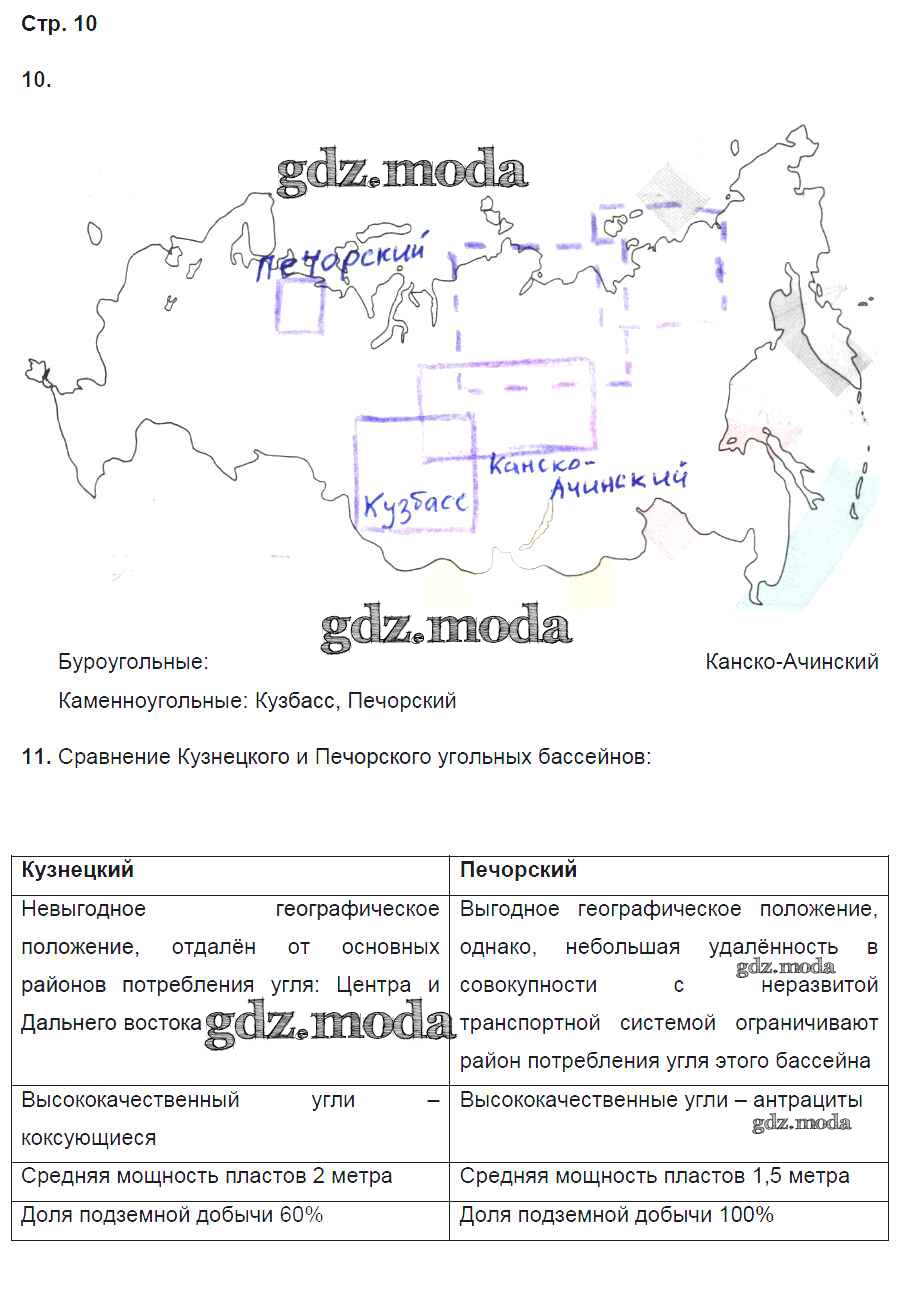 ГДЗ решение к заданию № 10 География России 9 класс рабочая тетрадь Баринова И.И. (к уч. Дронова) Дрофа 2016 ФГОС бесплатно на гдз.мода!