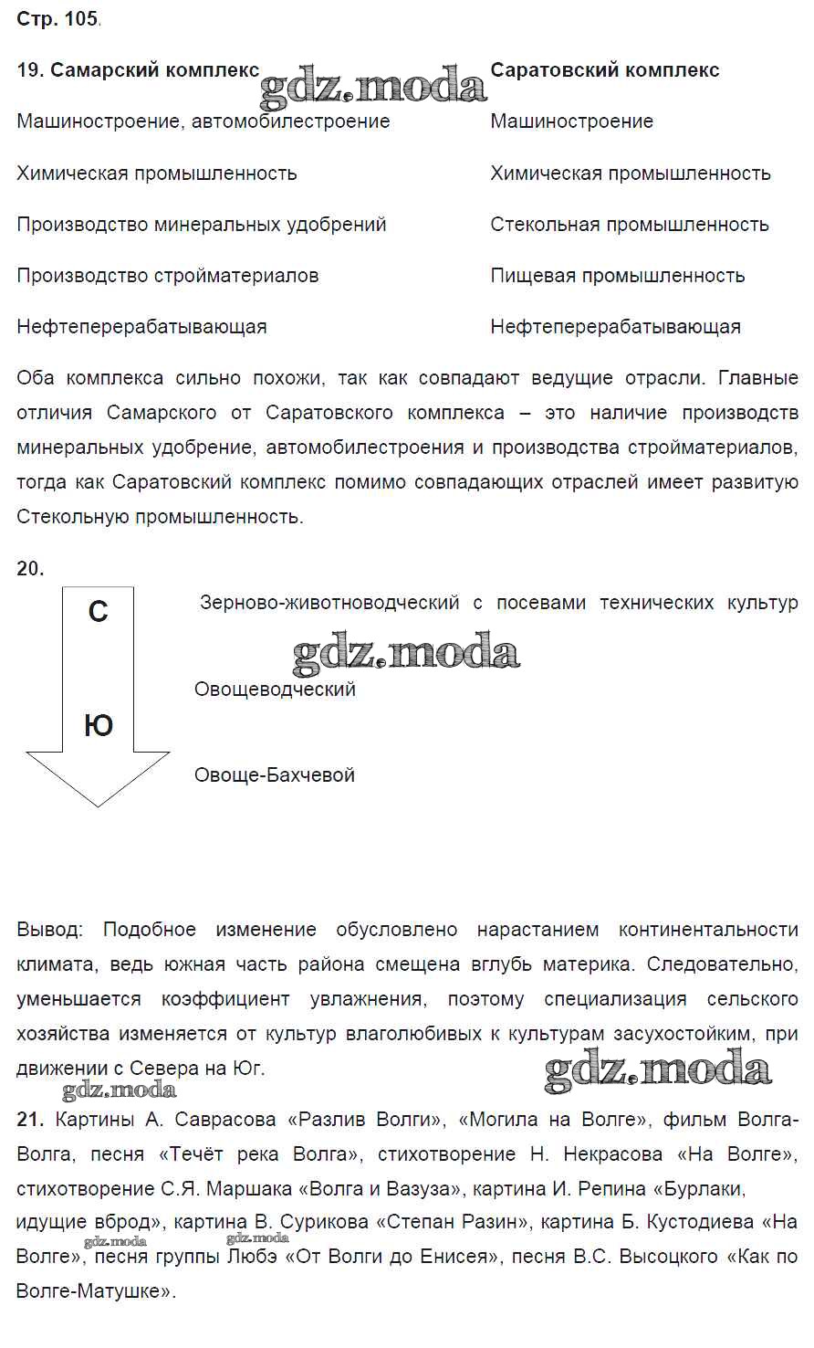 ГДЗ решение к заданию № 105 География России 9 класс рабочая тетрадь Баринова И.И. (к уч. Дронова) Дрофа 2016 ФГОС бесплатно на гдз.мода!
