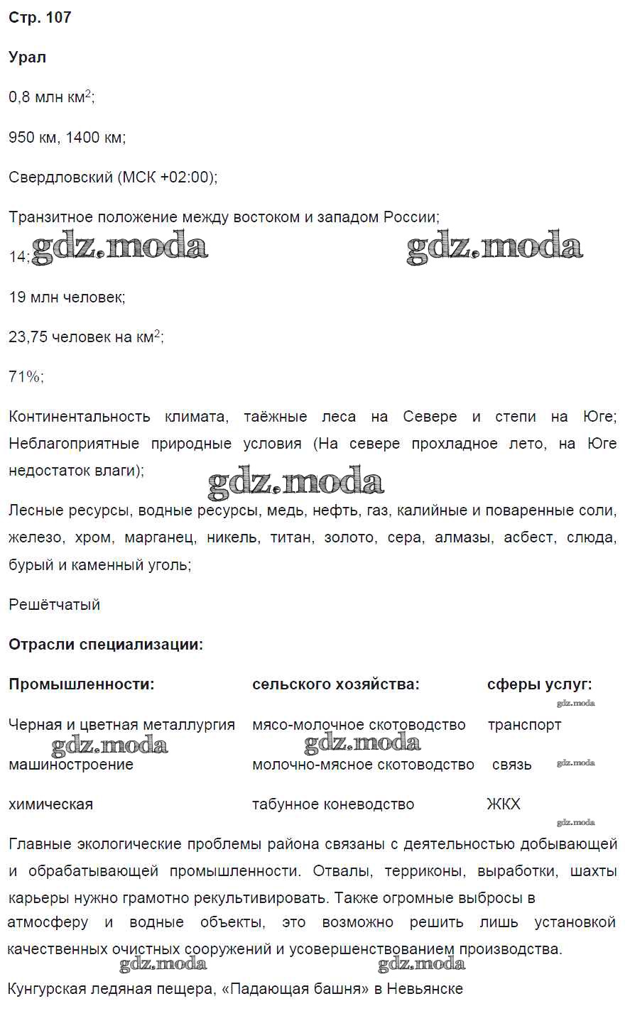 ГДЗ решение к заданию № 107 География России 9 класс рабочая тетрадь Баринова И.И. (к уч. Дронова) Дрофа 2016 ФГОС бесплатно на гдз.мода!