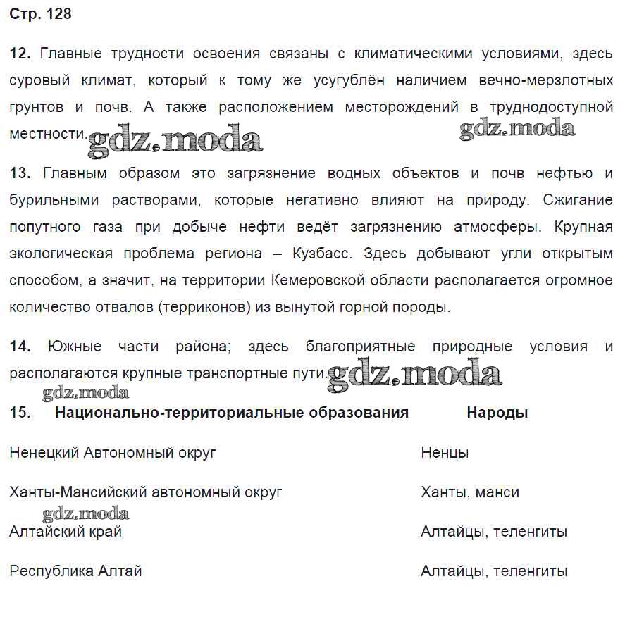 ГДЗ решение к заданию № 128 География России 9 класс рабочая тетрадь Баринова И.И. (к уч. Дронова) Дрофа 2016 ФГОС бесплатно на гдз.мода!