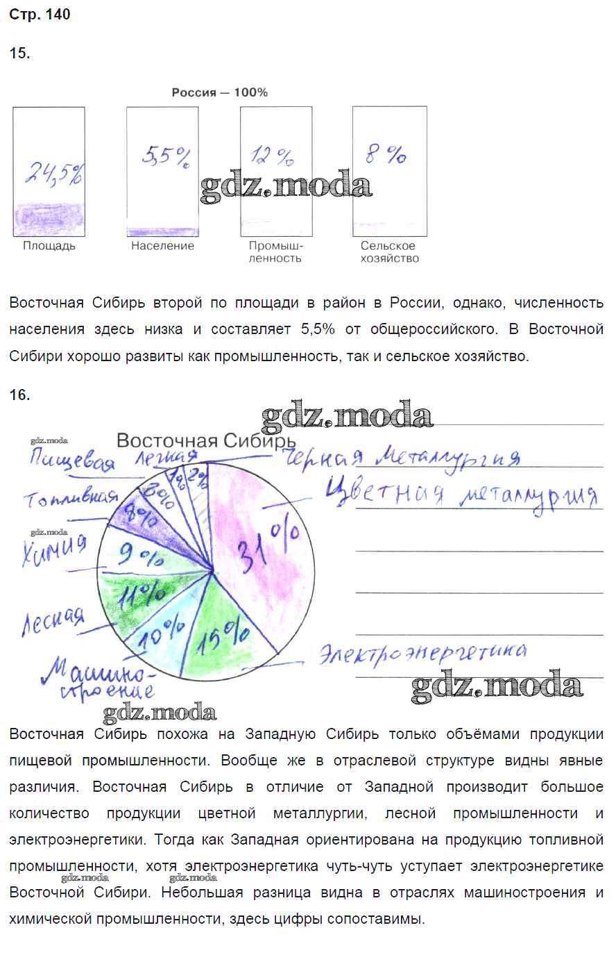 ГДЗ решение к заданию № 140 География России 9 класс рабочая тетрадь Баринова И.И. (к уч. Дронова) Дрофа 2016 ФГОС бесплатно на гдз.мода!