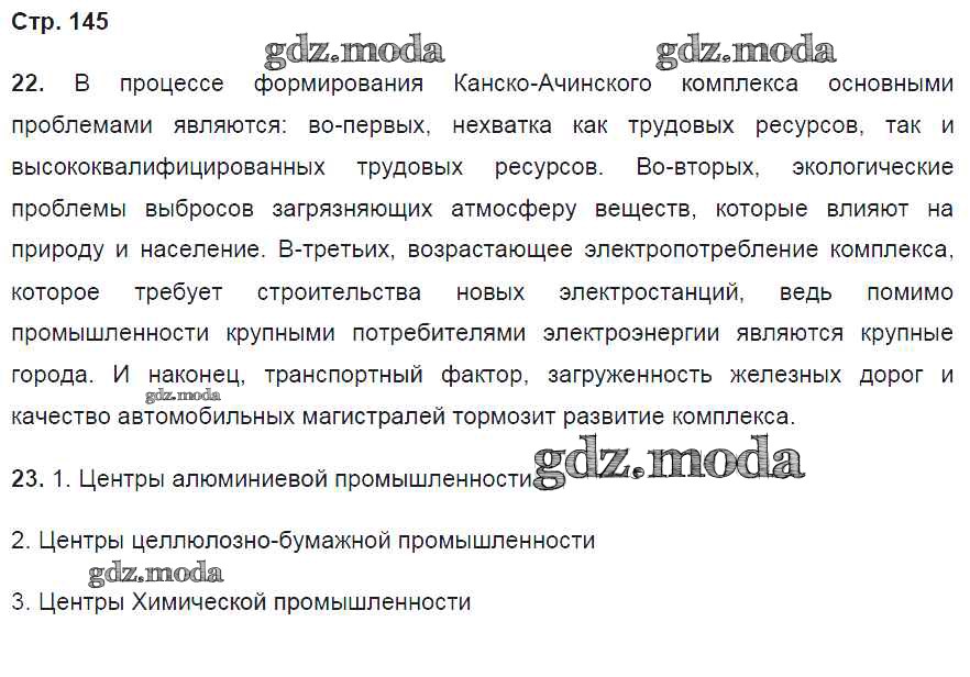 ГДЗ решение к заданию № 145 География России 9 класс рабочая тетрадь Баринова И.И. (к уч. Дронова) Дрофа 2016 ФГОС бесплатно на гдз.мода!
