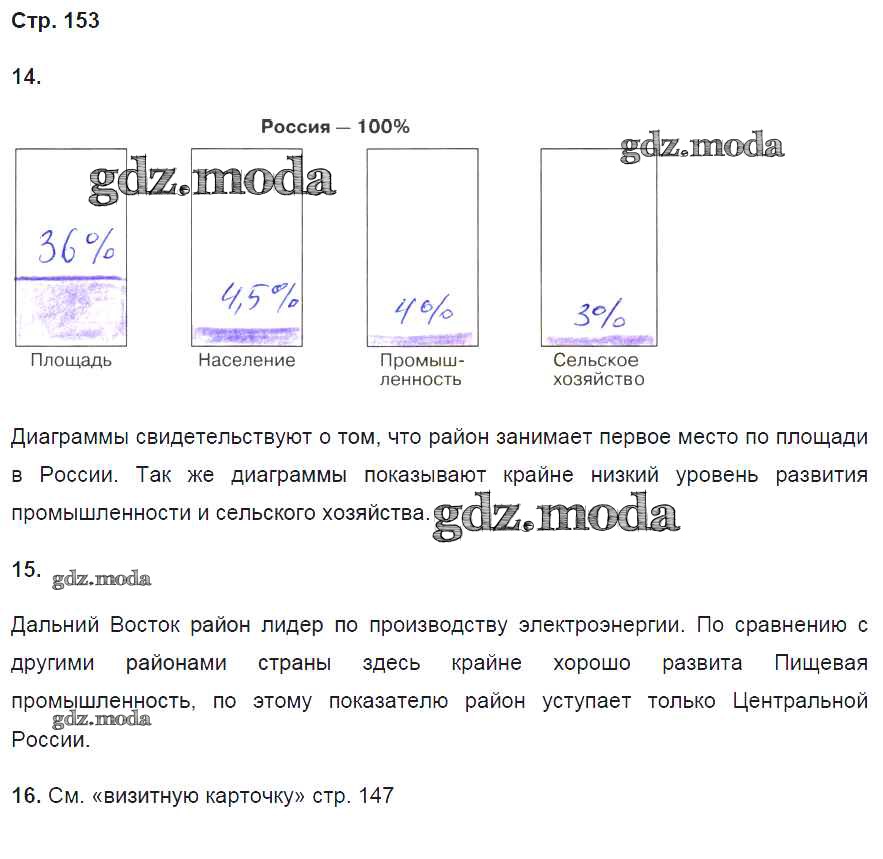 ГДЗ решение к заданию № 153 География России 9 класс рабочая тетрадь Баринова И.И. (к уч. Дронова) Дрофа 2016 ФГОС бесплатно на гдз.мода!