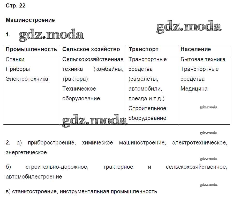 ГДЗ решение к заданию № 22 География России 9 класс рабочая тетрадь Баринова И.И. (к уч. Дронова) Дрофа 2016 ФГОС бесплатно на гдз.мода!