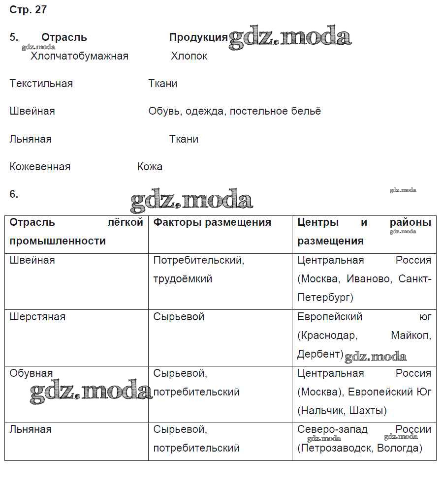 ГДЗ решение к заданию № 27 География России 9 класс рабочая тетрадь Баринова И.И. (к уч. Дронова) Дрофа 2016 ФГОС бесплатно на гдз.мода!