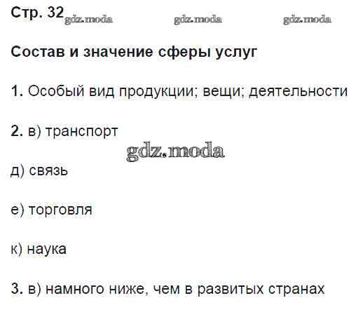 ГДЗ решение к заданию № 32 География России 9 класс рабочая тетрадь Баринова И.И. (к уч. Дронова) Дрофа 2016 ФГОС бесплатно на гдз.мода!