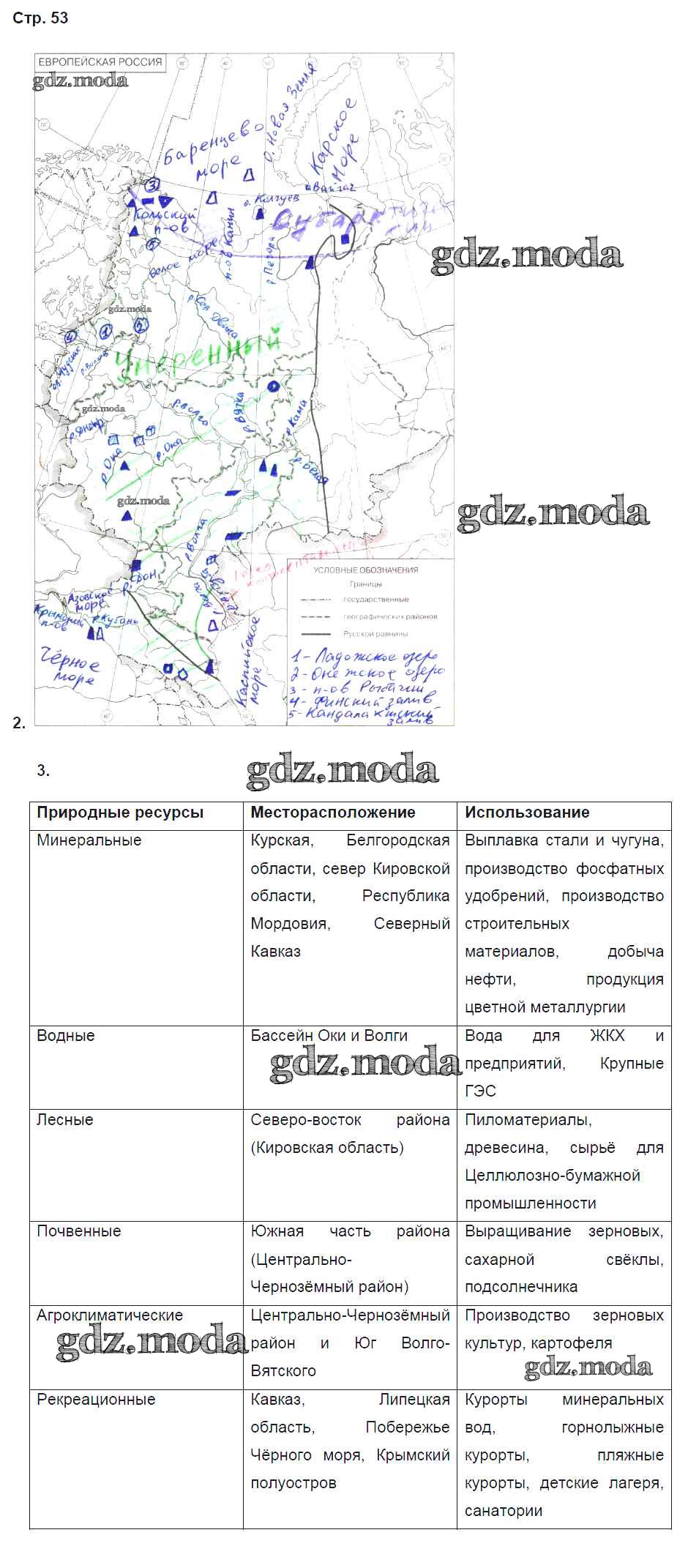 ГДЗ решение к заданию № 53 География России 9 класс рабочая тетрадь Баринова И.И. (к уч. Дронова) Дрофа 2016 ФГОС бесплатно на гдз.мода!