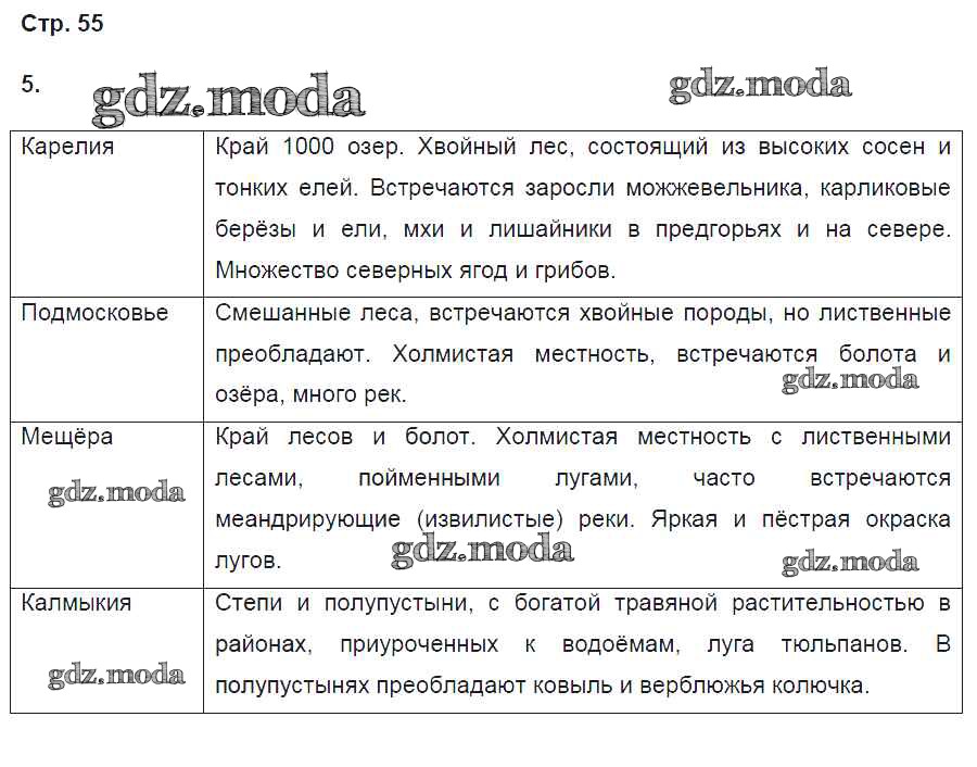 ГДЗ решение к заданию № 55 География России 9 класс рабочая тетрадь Баринова И.И. (к уч. Дронова) Дрофа 2016 ФГОС бесплатно на гдз.мода!
