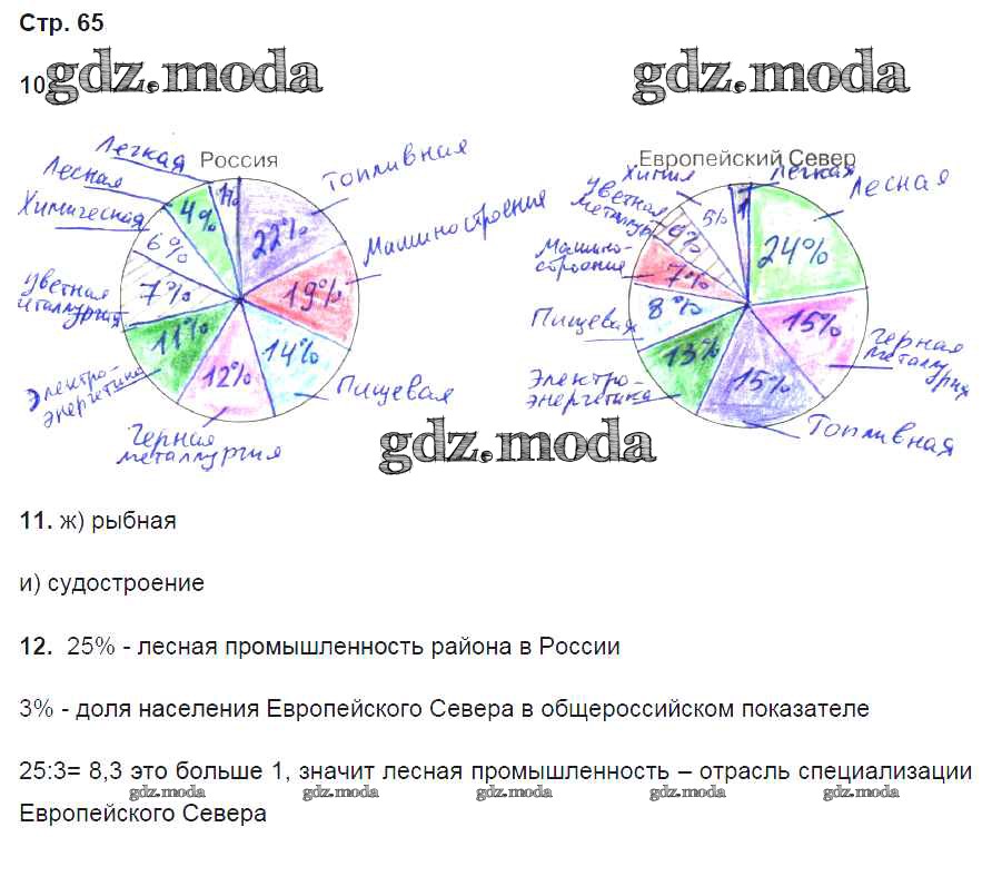 ГДЗ решение к заданию № 65 География России 9 класс рабочая тетрадь Баринова И.И. (к уч. Дронова) Дрофа 2016 ФГОС бесплатно на гдз.мода!