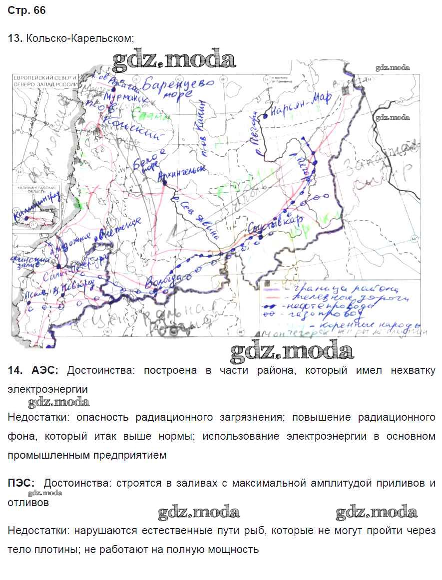 ГДЗ решение к заданию № 66 География России 9 класс рабочая тетрадь Баринова И.И. (к уч. Дронова) Дрофа 2016 ФГОС бесплатно на гдз.мода!