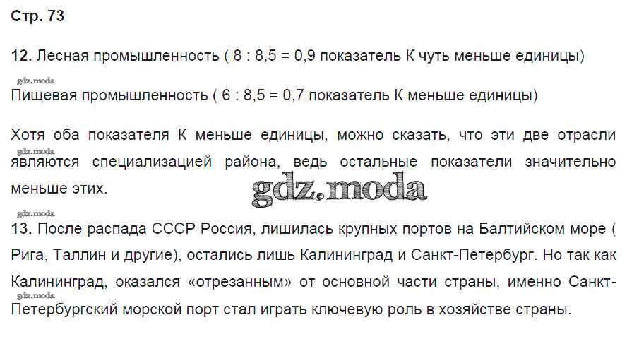 ГДЗ решение к заданию № 73 География России 9 класс рабочая тетрадь Баринова И.И. (к уч. Дронова) Дрофа 2016 ФГОС бесплатно на гдз.мода!