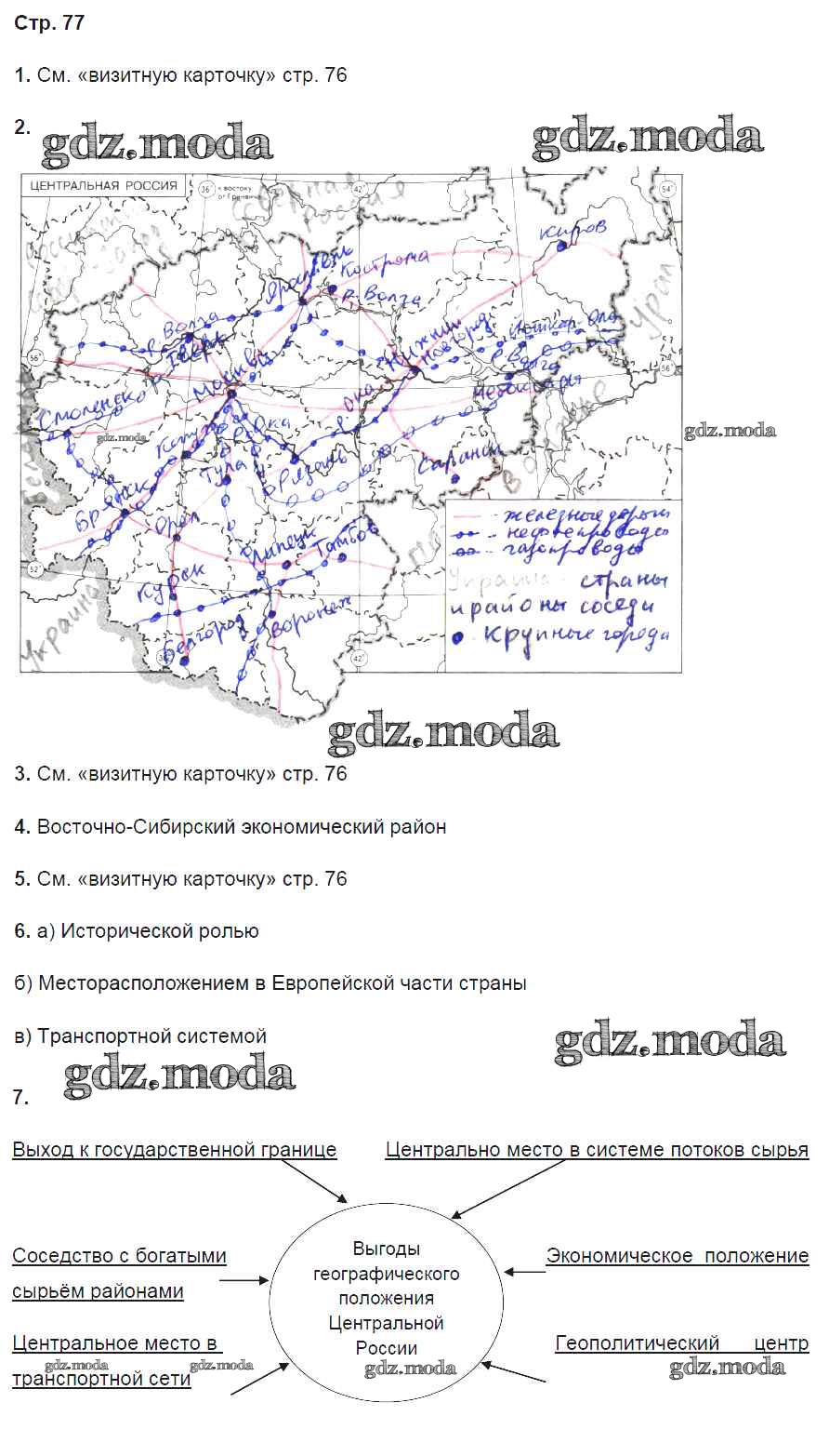 ГДЗ решение к заданию № 77 География России 9 класс рабочая тетрадь Баринова И.И. (к уч. Дронова) Дрофа 2016 ФГОС бесплатно на гдз.мода!
