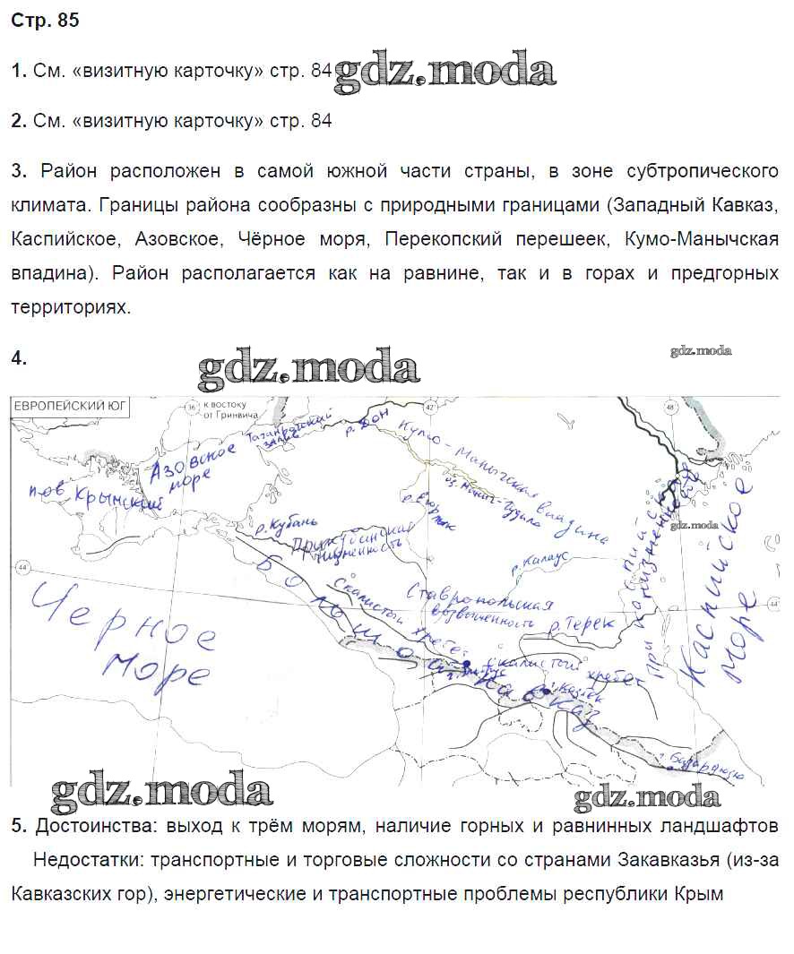 ГДЗ решение к заданию № 85 География России 9 класс рабочая тетрадь Баринова И.И. (к уч. Дронова) Дрофа 2016 ФГОС бесплатно на гдз.мода!