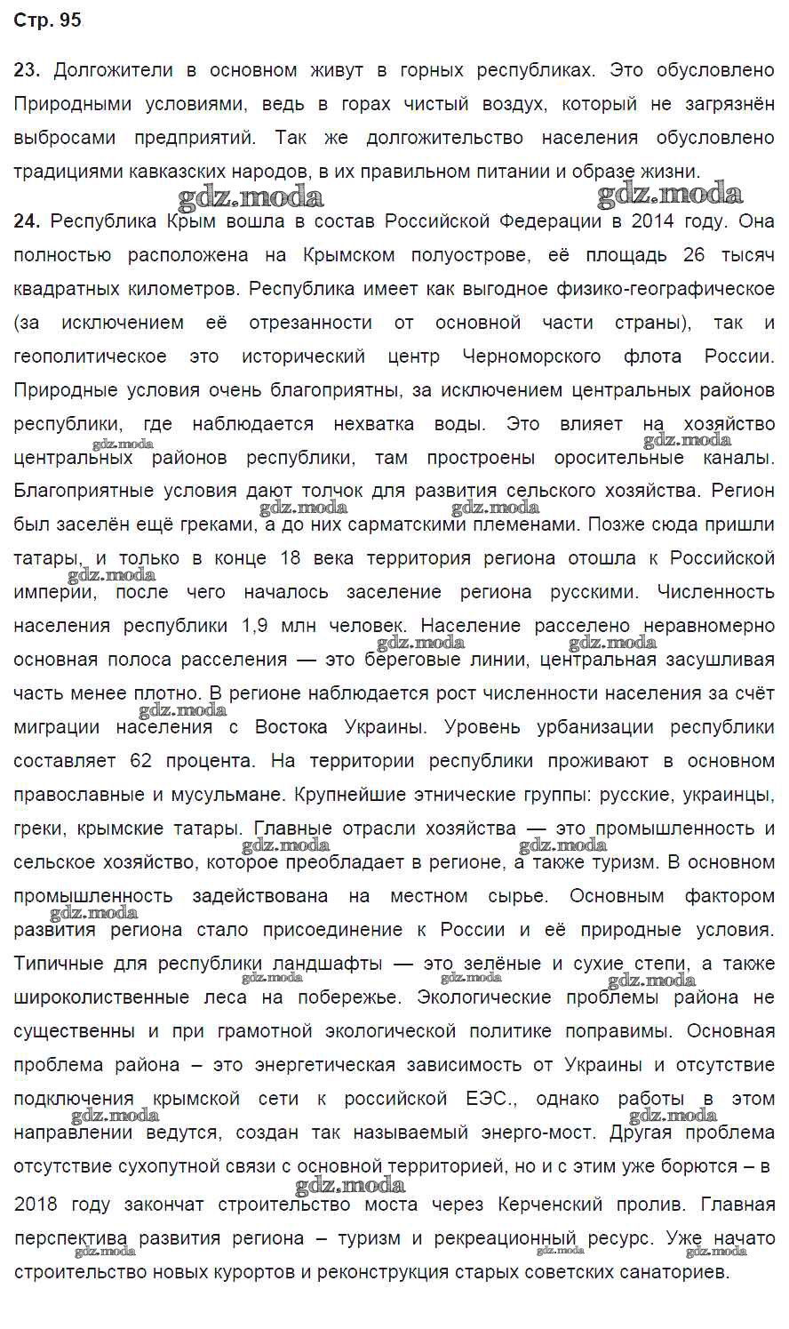 ГДЗ решение к заданию № 95 География России 9 класс рабочая тетрадь Баринова И.И. (к уч. Дронова) Дрофа 2016 ФГОС бесплатно на гдз.мода!