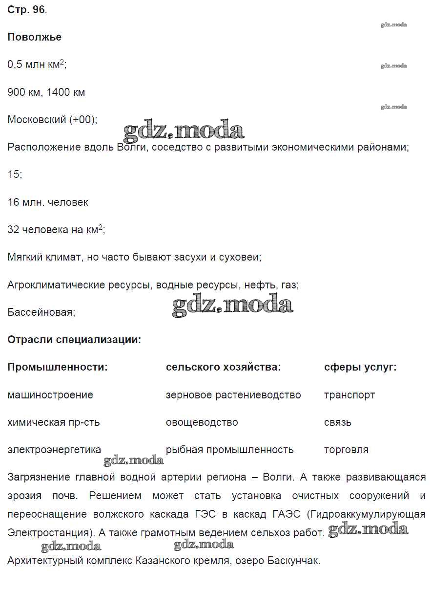 ГДЗ решение к заданию № 96 География России 9 класс рабочая тетрадь Баринова И.И. (к уч. Дронова) Дрофа 2016 ФГОС бесплатно на гдз.мода!