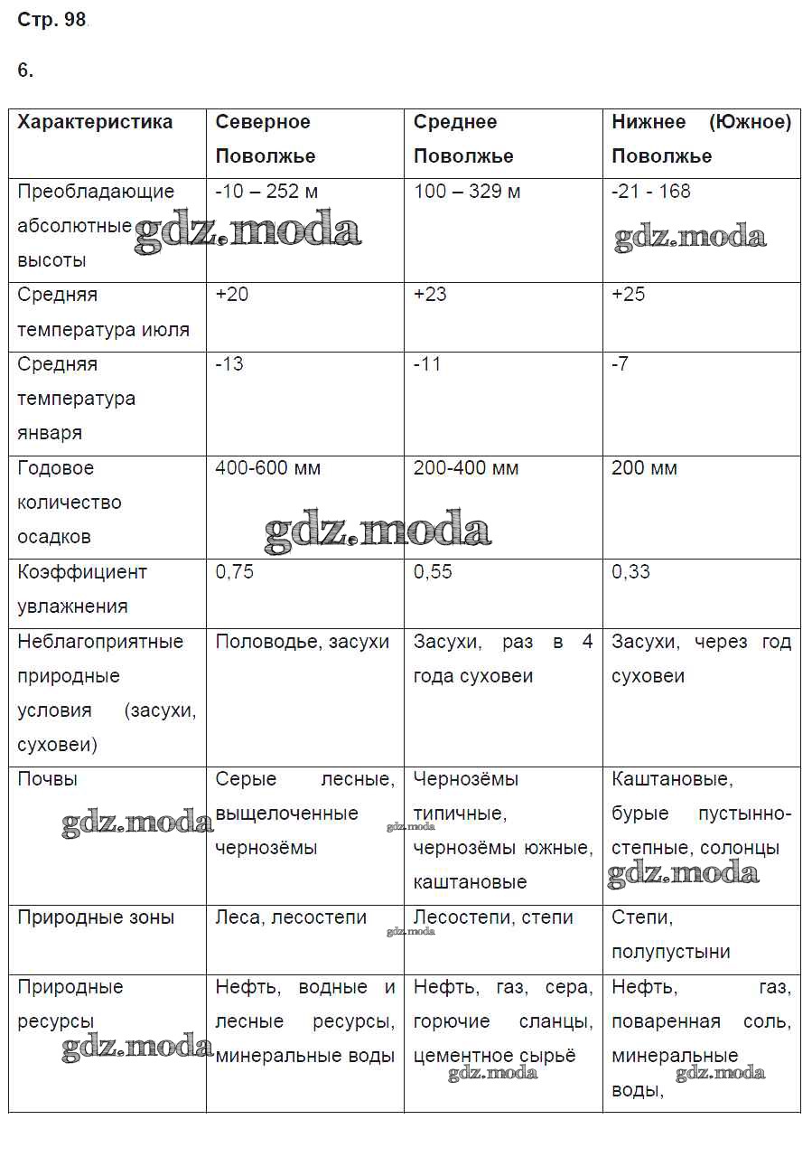ГДЗ решение к заданию № 98 География России 9 класс рабочая тетрадь Баринова И.И. (к уч. Дронова) Дрофа 2016 ФГОС бесплатно на гдз.мода!