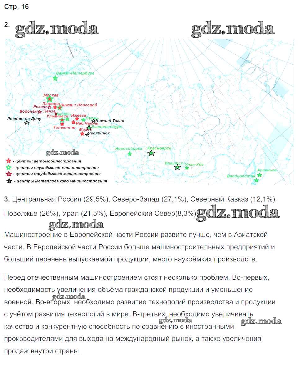 ГДЗ решение к заданию № 16 География 9 класс Рабочая тетрадь с комплектом контурных карт Баринова И.И. Экзамен 2019 ФГОС бесплатно на гдз.мода!