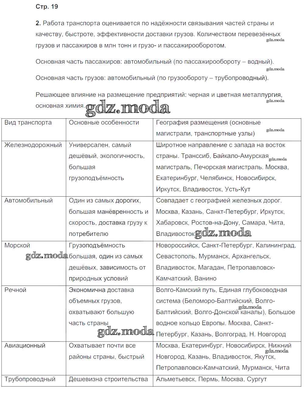 ГДЗ решение к заданию № 19 География 9 класс Рабочая тетрадь с комплектом контурных карт Баринова И.И. Экзамен 2019 ФГОС бесплатно на гдз.мода!